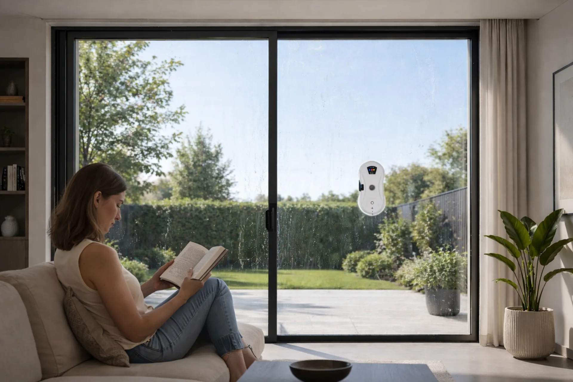 Transformez votre façon de nettoyer vos vitres : un robot intelligent qui pulvérise, frotte et essuie vos surfaces vitrées à votre place — pendant que vous profitez de votre temps libre.